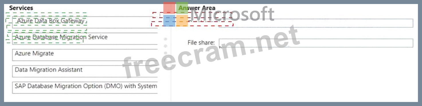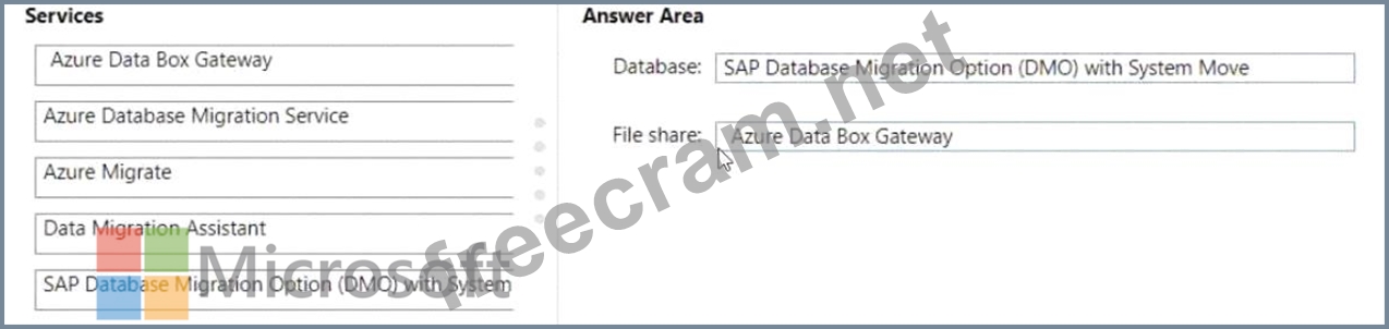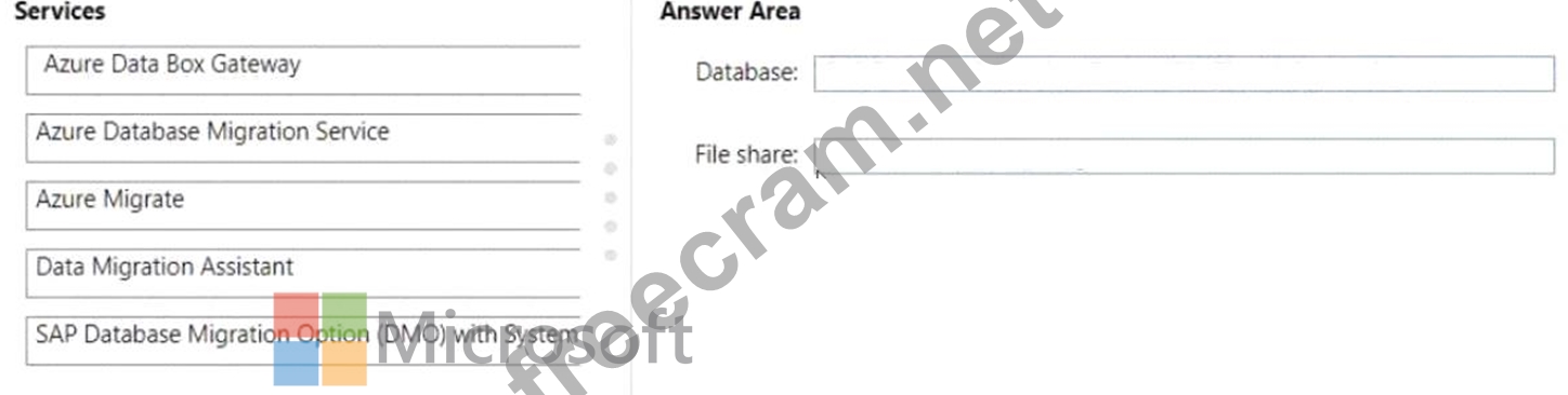 You have an on-premises SAP landscape that uses a DB2 database and contains an SAP Financial Accounting (SAP FIN) deployment. The deployment contains a file share that stores 50 TB of bitmap files. You plan to migrate the on-premises SAP landscape to SAP HANA on Azure (Large Instances) and Azure Files shares.
