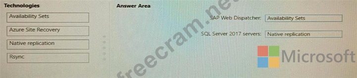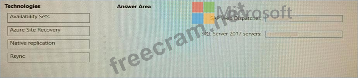 Which fault tolerance technology should you choose for the SAP Web Dispatcher and the Microsoft SQL Server 2017 servers to meet the requirements? To answer, drag the appropriate technologies to The correct targets. Each technology may be used once, more than once, or not at all. You may need to drag the split bar between panes or scroll to view content.