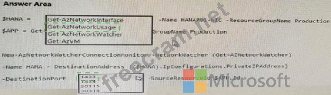 How should you complete the script? To answer, select the appropriate options in the answer are.