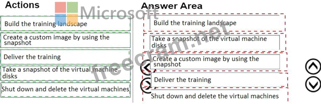 In which order should you recommend the actions be performed for the first training session? To answer, move all actions from the list of actions to the answer area and arrange them in the correct order.