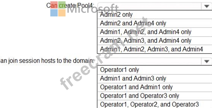 Which users can create Pool4, and which users can join session hosts to the domain? To answer, select the appropriate options in the answer area.