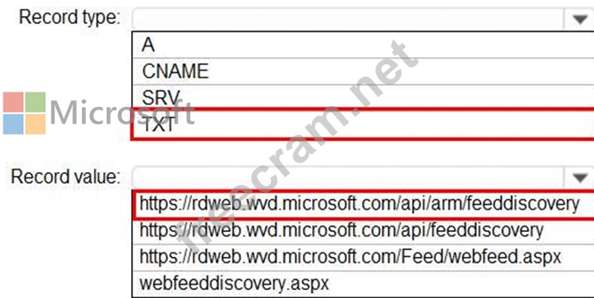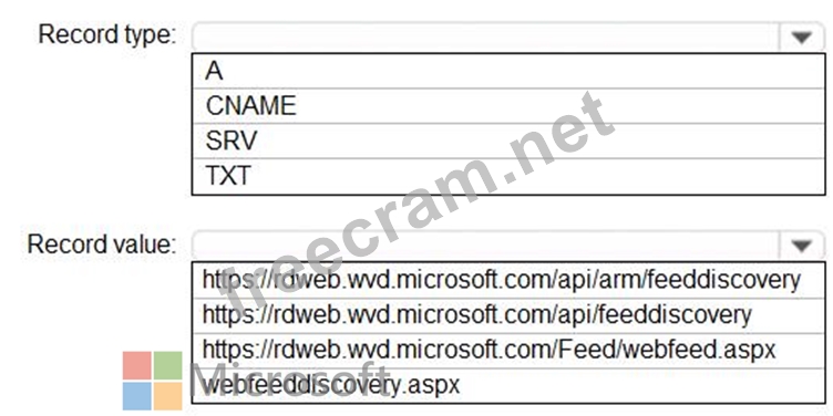 How should you configure the _msradc DNS record? To answer, select the appropriate options in the answer area.