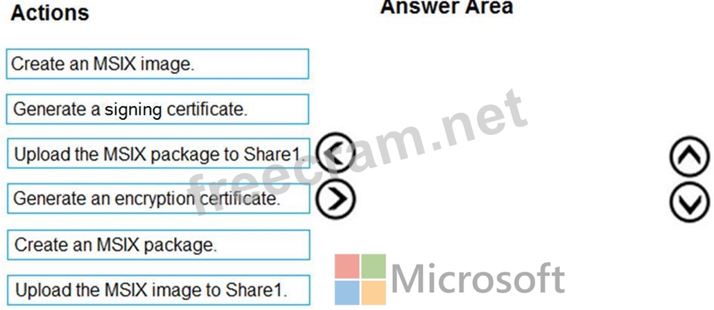 Which four actions should you perform in sequence before you publish App1? To answer, move the appropriate actions from the list of actions to the answer area and arrange them in the correct order.