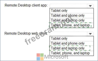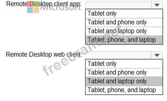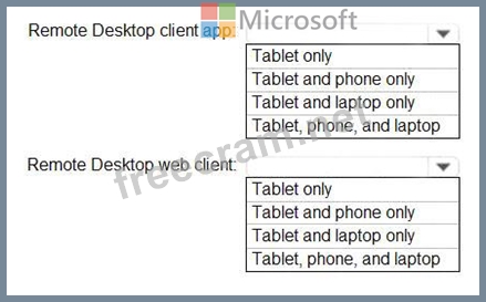 From which device types can the users connect to Windows Virtual Desktop resources by using the Remote Desktop client app and the Remote Desktop web client? To answer, select the appropriate options in the answer area.