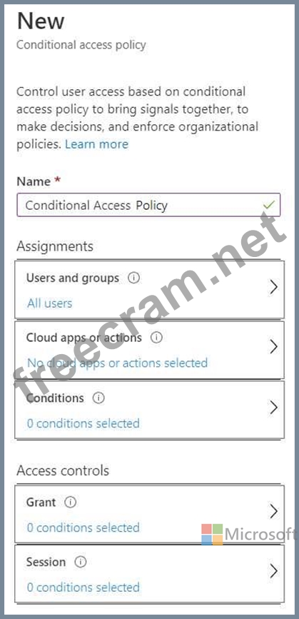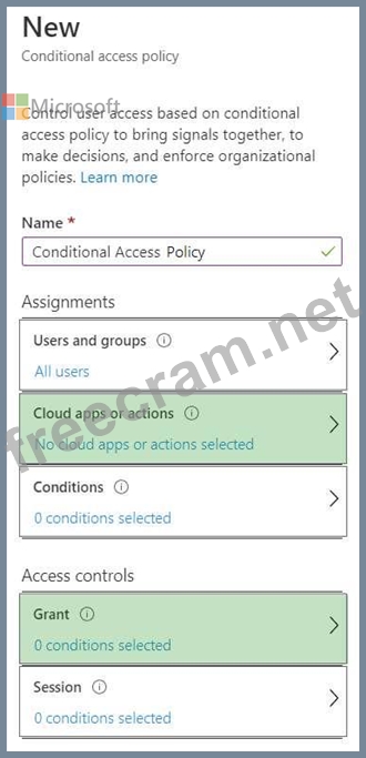 Which two settings should you modify in a conditional access policy? To answer, select the appropriate options in the answer area.