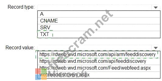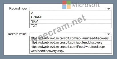 How should you configure the _msradc DNS record? To answer, select the appropriate options in the answer area.