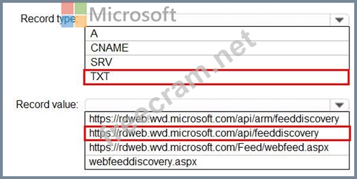 How should you configure the _msradc DNS record? To answer, select the appropriate options in the answer area.