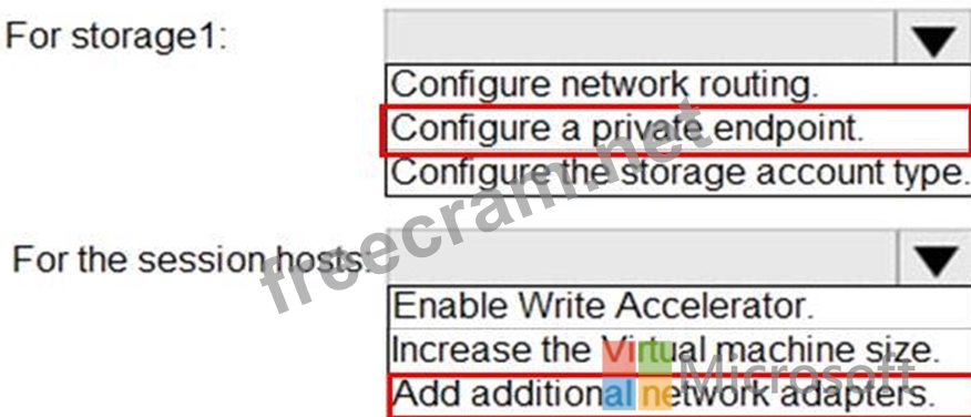 You need to configure the session hosts and storage1 to minimize network latency when loading and updating profiles.