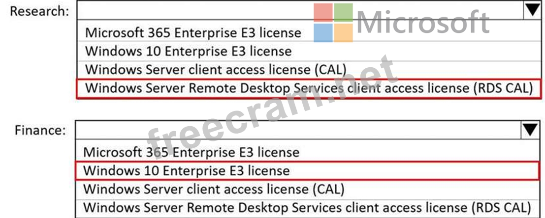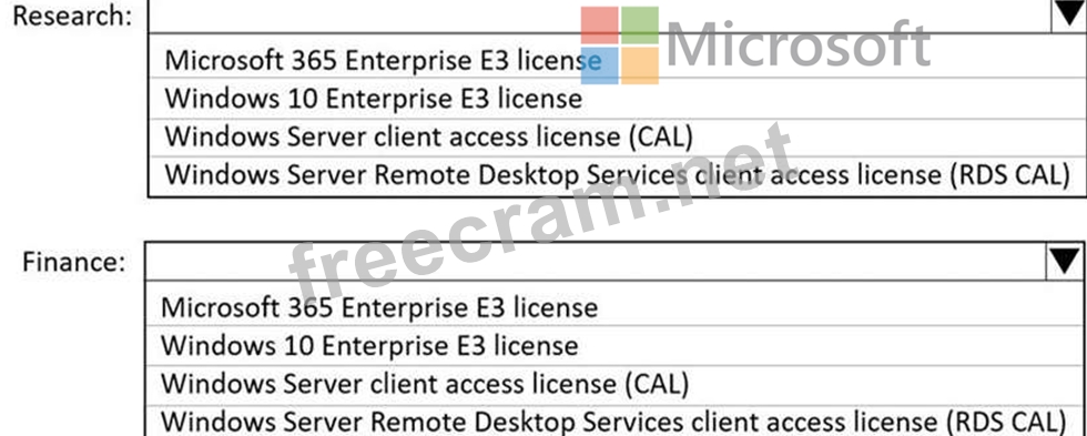 Which license should you recommend for each department? To answer, select the appropriate options in the answer area.