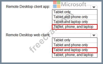 From which device types can the users connect to Windows Virtual Desktop resources by using the Remote Desktop client app and the Remote Desktop web client? To answer, select the appropriate options in the answer area.
