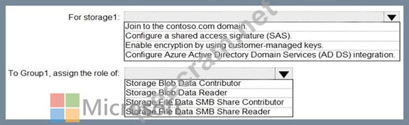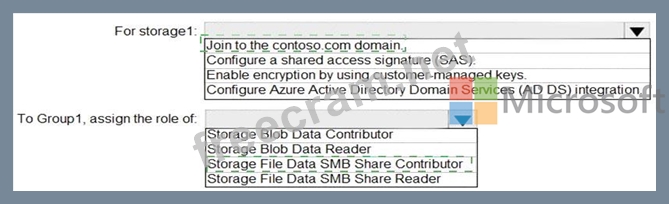 You need to use FSLogix profile containers in storage1 to store user profiles for a group named Group1. The solution must use the principle of least privilege.