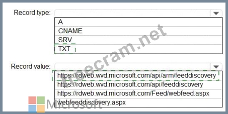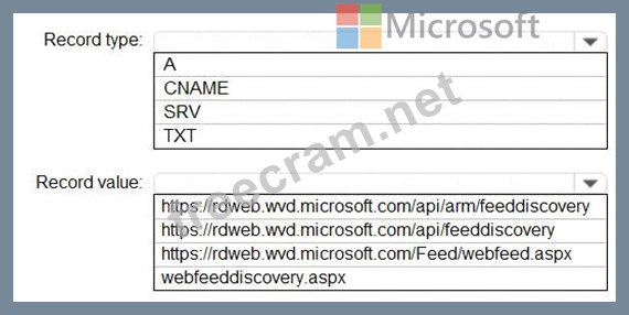 How should you configure the _msradc DNS record? To answer, select the appropriate options in the answer area.