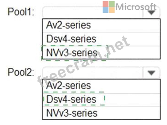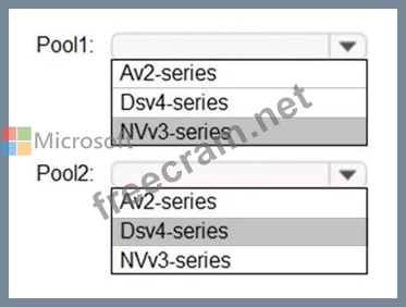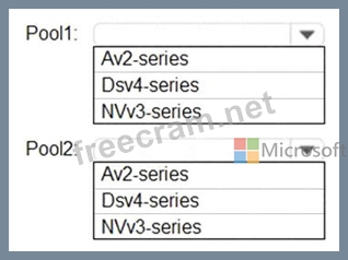 Which size should you recommend for each pool? To answer, select the appropriate options in the answer area.
