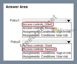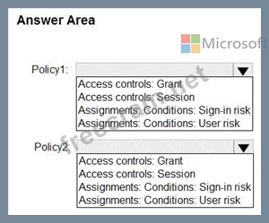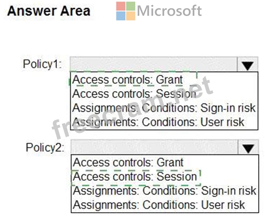 Which settings should you configure in Policy1 and Policy2? To answer, select the appropriate options in the answer area.