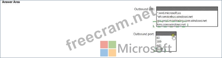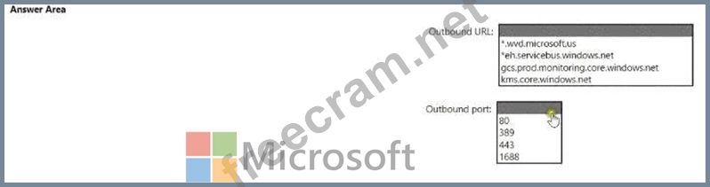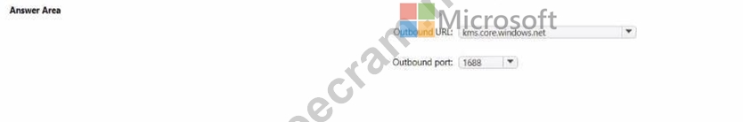 Which outbound URL and outbound port should you configure to ensure that the host machines maintain Windows activation? To answer, select the appropriate options In the answer area.