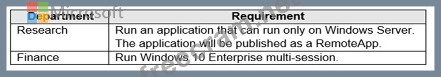 You plan to deploy Azure Virtual Desktop to meet the department requirements shown in the following table.