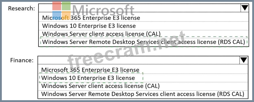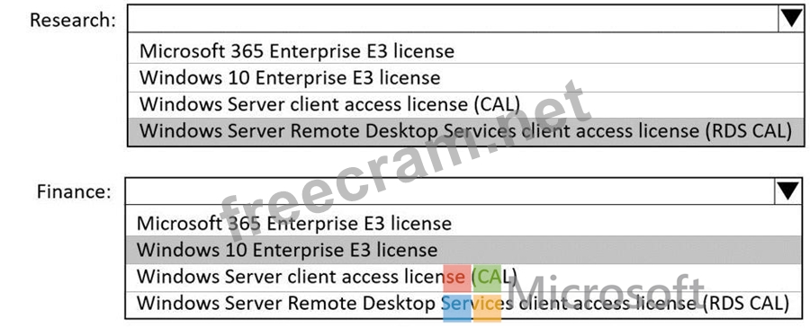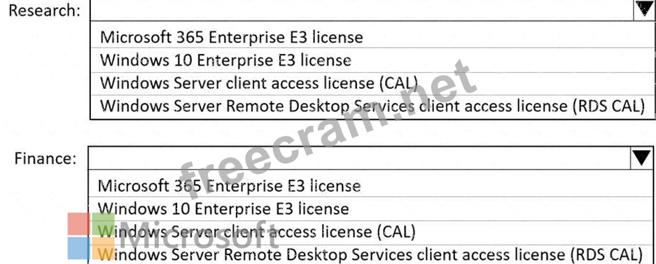 Which license should you recommend for each department? To answer, select the appropriate options in the answer area.