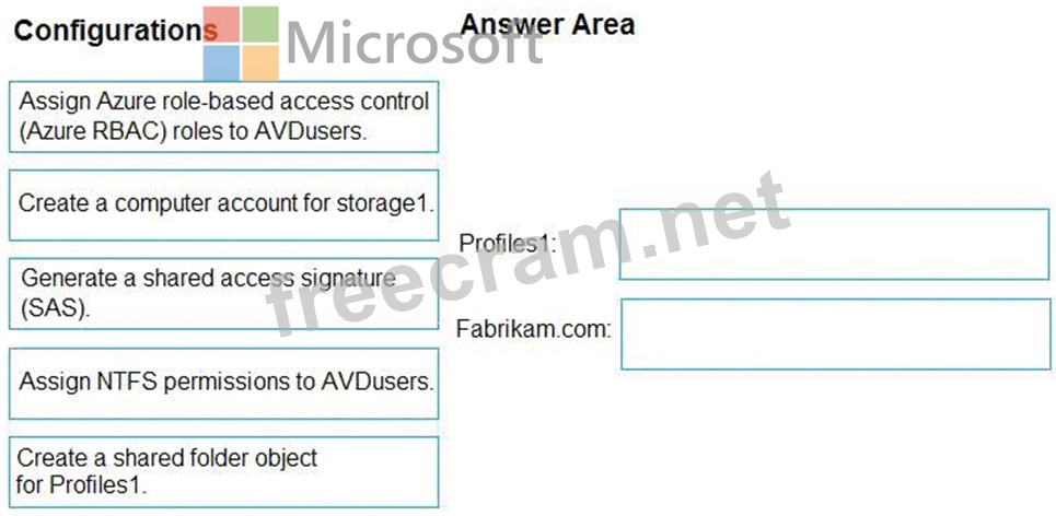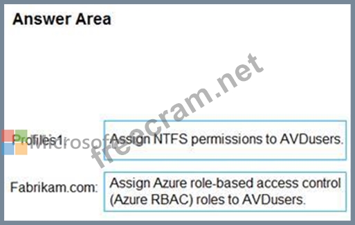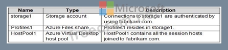 You need to configure Profiles1 and fabrikam.com to ensure that the HostPool1 sessions hosts can access the FSLogix profile containers.