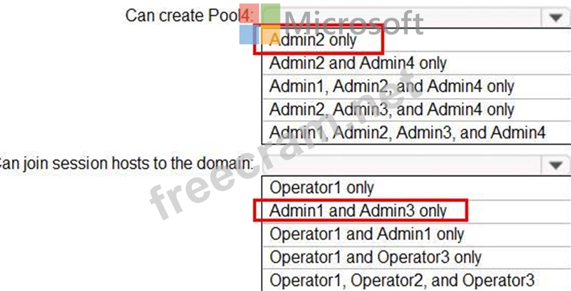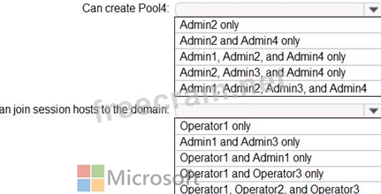 Which users can create Pool4, and which users can join session hosts to the domain? To answer, select the appropriate options in the answer area.