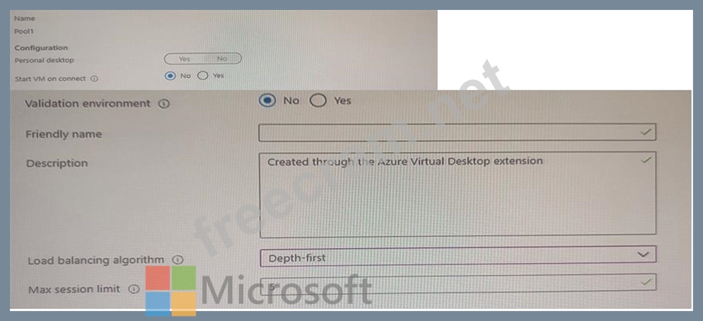 Question 75: You create an Azure Virtual Desktop host pool as shown in th...