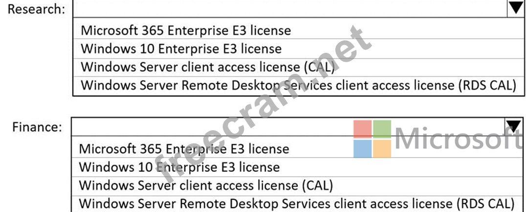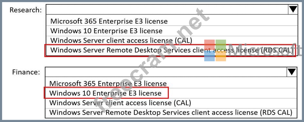 Which license should you recommend for each department? To answer, select the appropriate options in the answer area.