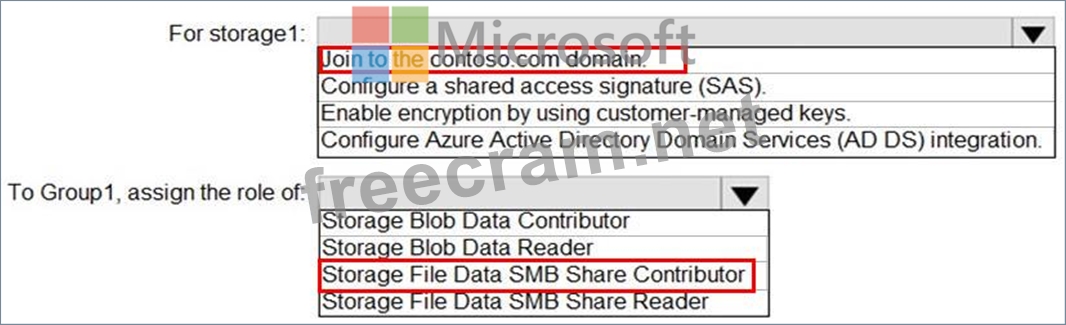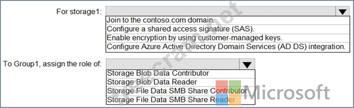 You need to use FSLogix profile containers in storage1 to store user profiles for a group named Group1. The solution must use the principle of least privilege.