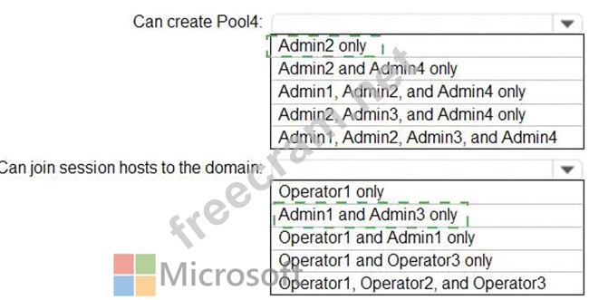 Which users can create Pool4, and which users can join session hosts to the domain? To answer, select the appropriate options in the answer area.