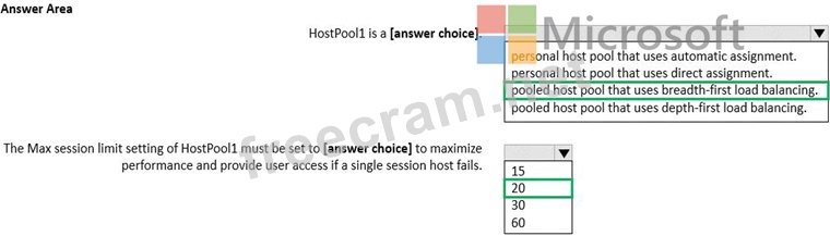 You have an Azure Virtual Desktop host pool named HostPool1 that must support 60 sessions.