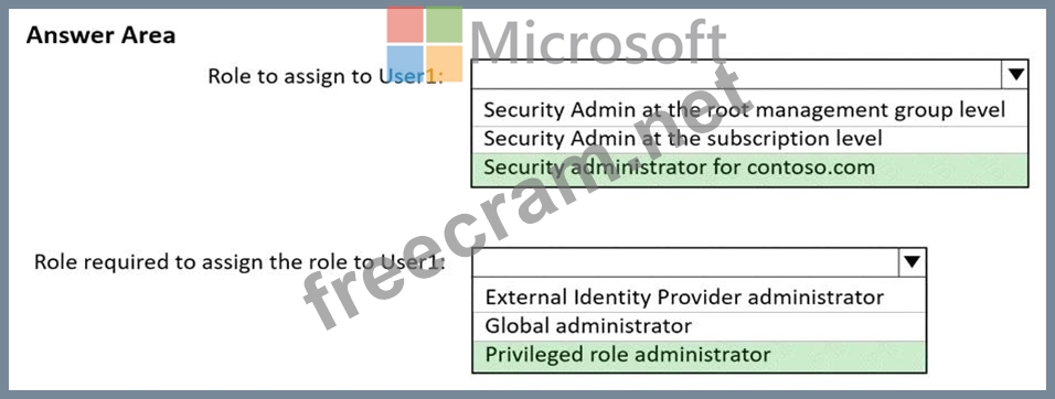Question 25: Which two roles should you assign to Admin2 to meet the secu...