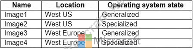 You have a shared image gallery that contains the Windows 10 images shown in the following table.