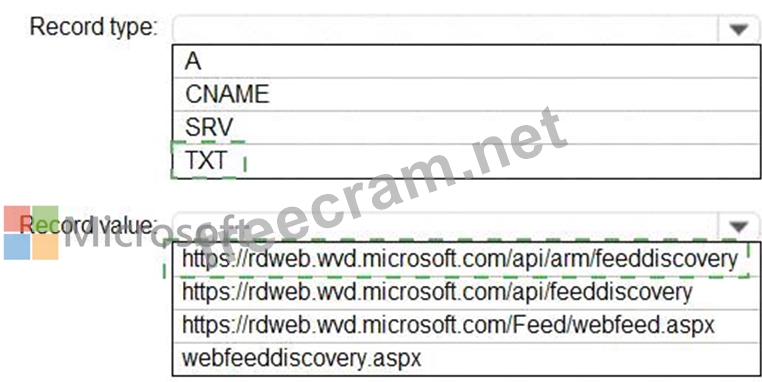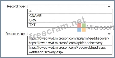 How should you configure the _msradc DNS record? To answer, select the appropriate options in the answer area.