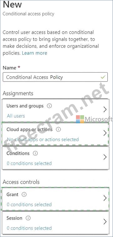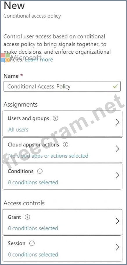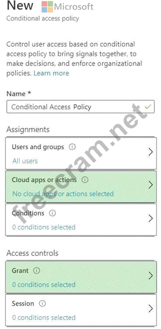 Which two settings should you modify in a conditional access policy? To answer, select the appropriate options in the answer area.