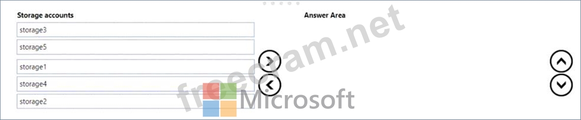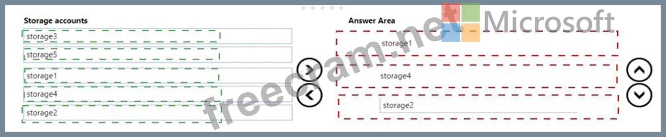 Which three storage accounts should you identify in sequence? To answer, move the appropriate accounts from the list of accounts to the answer area and arrange them in the correct order.