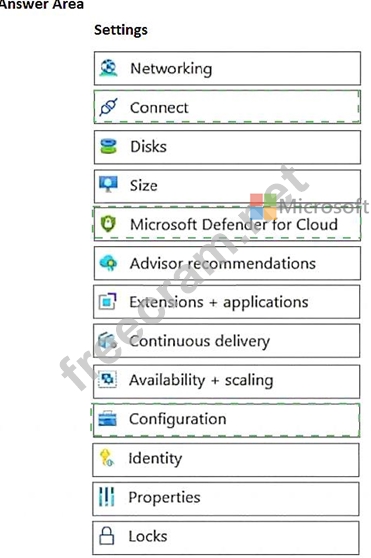 Which three virtual machine settings can you use to request access? To answer, select the appropriate settings in the answer area.
