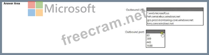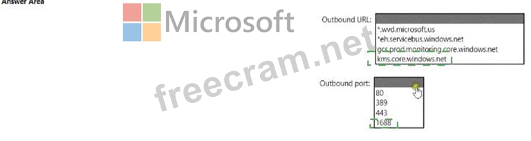 Which outbound URL and outbound port should you configure to ensure that the host machines maintain Windows activation? To answer, select the appropriate options In the answer area.