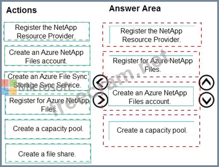 Which four actions should you perform in sequence? To answer, move the appropriate actions from the list of actions to the answer area and arrange them in the correct order.