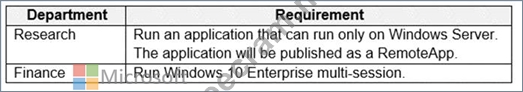 You plan to deploy Azure Virtual Desktop to meet the department requirements shown in the following table.