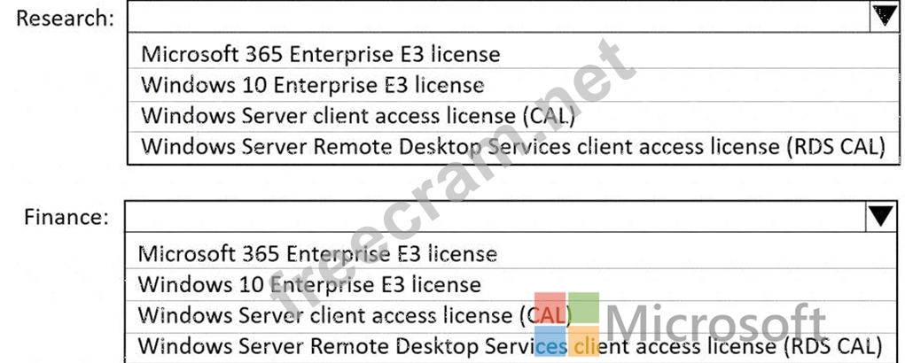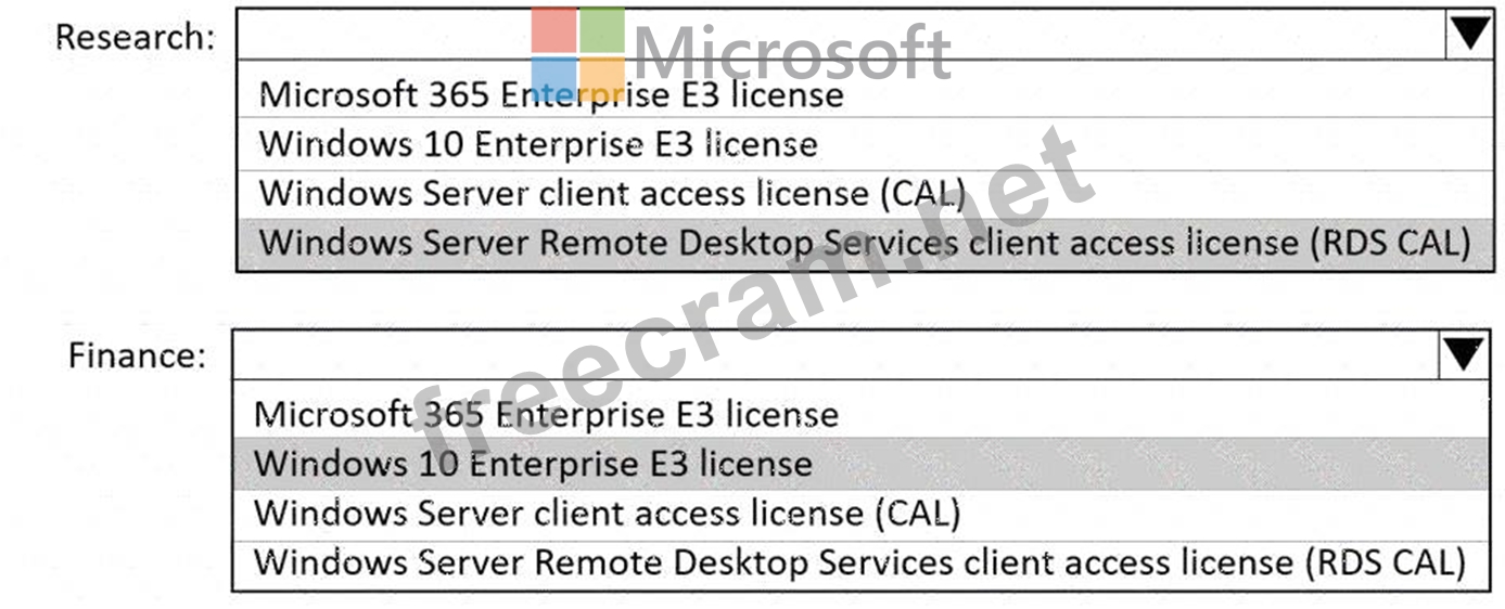 Which license should you recommend for each department? To answer, select the appropriate options in the answer area.