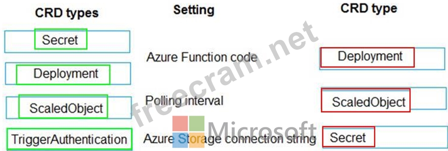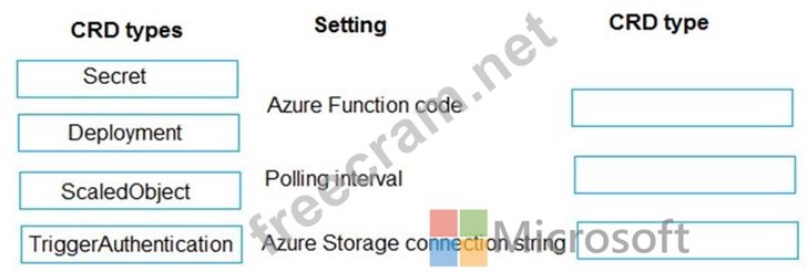Which CRDs should you configure? To answer, drag the appropriate CRD types to the correct locations. Each CRD type may be used once, more than once, or not at all. You may need to drag the split bar between panes or scroll to view content.