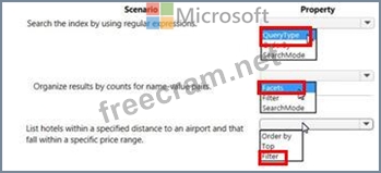 You are developing a .NET Core MVC application for customers to research hotels. The application will use Azure Search. The application will search the index by using various criteria to locate documents related to hotels. The index will include search fields for rate, a list of amenities, and distance to the nearest airport.