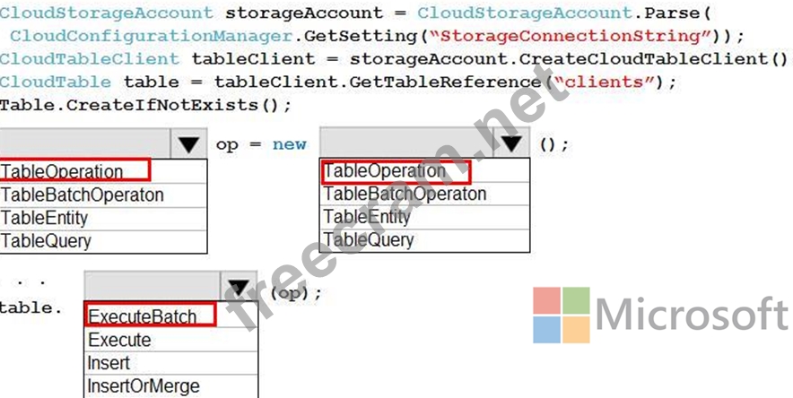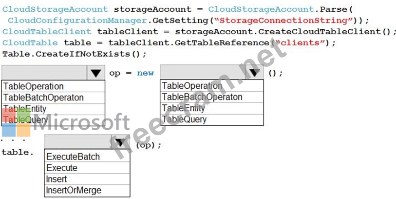 How should you complete the code? To answer, select the appropriate options in the answer area.