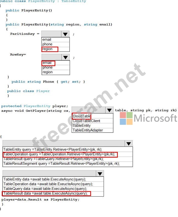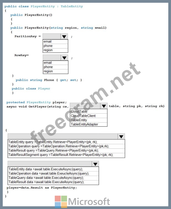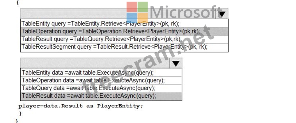 How should you complete the code? To answer, select the appropriate options in the answer area.