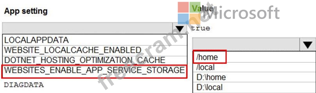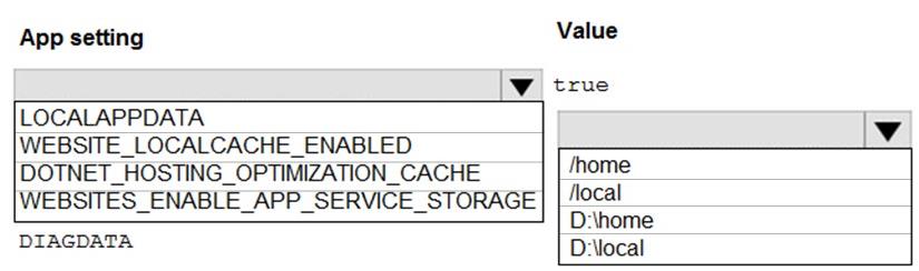 How should you configure the web app's settings? To answer, select the appropriate options in the answer area.