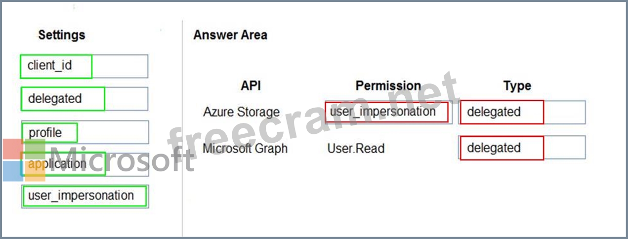 How should you configure the application? To answer, drag the appropriate setting to the correct location. Each setting may be used once, more than once, or not at all. You may need to drag the split bar between panes or scroll to view content.