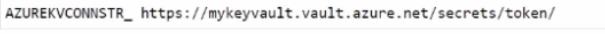 You are developing an Azure Function that calls external APIs by providing an access token for the API. The access token is stored in a secret named token in an Azure Key Vault named mykeyvault.