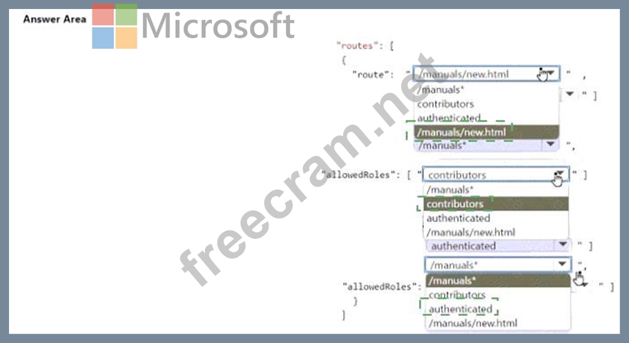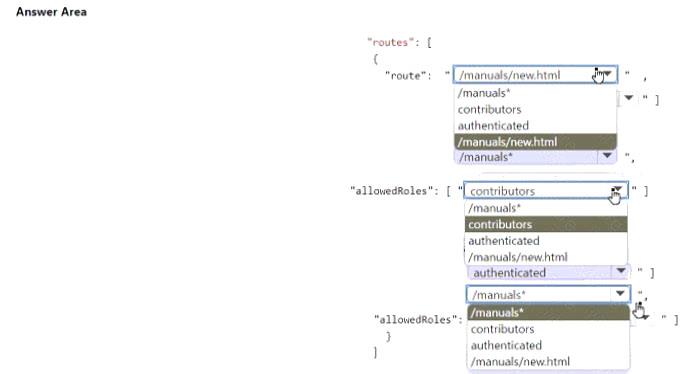 Question 46: You develop and deploy the following staticwebapp.config.jso...