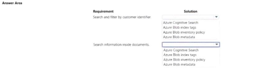 You are developing a solution to store documents in Azure Blob storage. Customers upload documents to multiple containers. Documents consist of PDF, CSV, Microsoft Office format, and plain text files.
