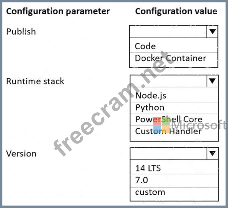 When creating a function app in Azure for custom handlers, we recommend you select .NET Core as the stack. A "Custom" stack for custom handlers will be added in the future.
