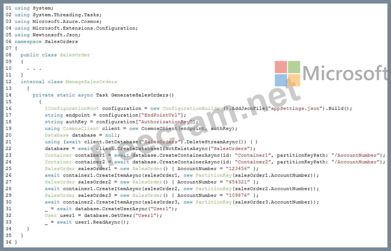 Question 187: You are developing an Azure Cosmos DB solution by using the ...