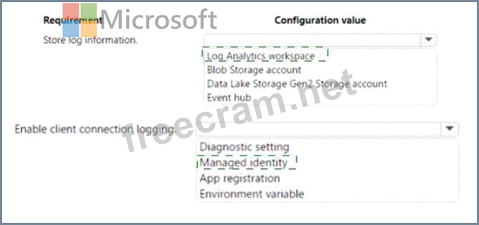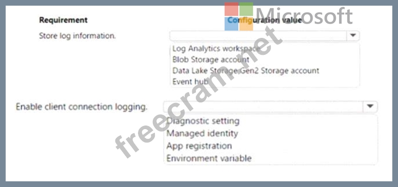 The audit information must be captured and analyzed by a security team application deployed to Central US region You need to log information on all client corrections to the cache.